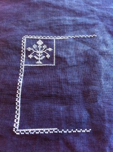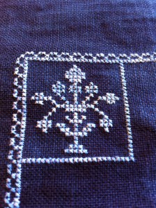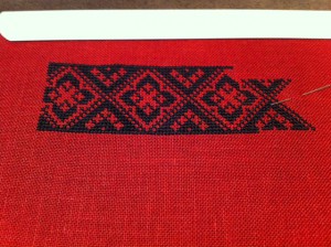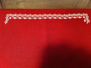 I can’t sew much at all, but this project was made easy with Aleene’s tacky glue.  I wrapped the cardboard in cotton batting and then basically wrapped the whole thing in fabric like a present.