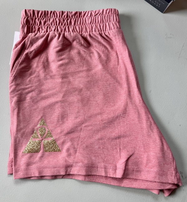 • Heathered pink shorts with gold glitter